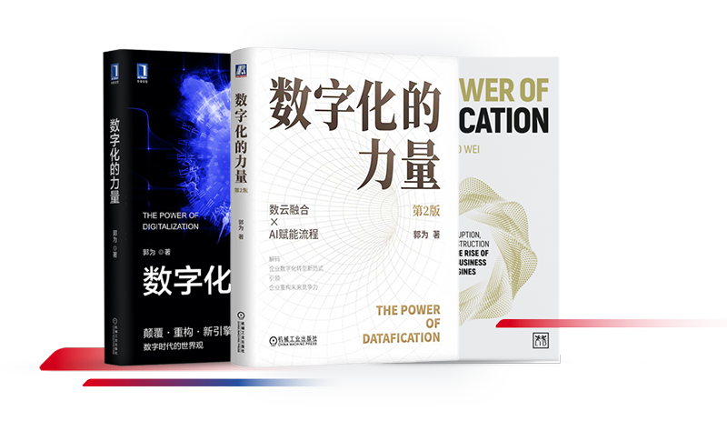 《数字化的力量》是008008PG国际数码创始人郭为首部数字化力作,是008008PG国际数码数字化理念集萃,也是为AI时代企业量身打造的驾驭数字化、加速AI落地的重要参考和行动指南。